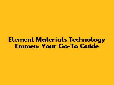 Hey guys! Ever found yourself scratching your head, trying to figure out where to go for top-notch materials testing and certification? Well, let me introduce you to Element Materials Technology Emmen. This place is a real game-changer, offering a wide array of services that ensure the materials and products we use every day are safe, reliable, and up to snuff. Whether you're in aerospace, oil and gas, or even life sciences, knowing about Element Emmen can seriously streamline your operations and give you peace of mind.