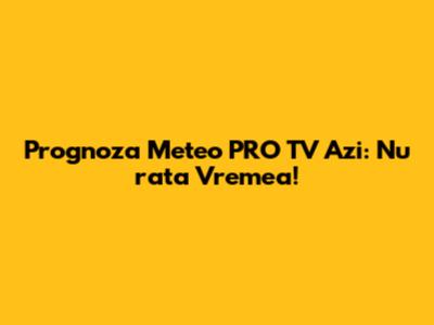 Prognoza Meteo PRO TV Azi: Nu Rata Vremea!
