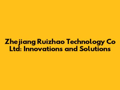 Zhejiang Ruizhao Technology: Innovations & Solutions